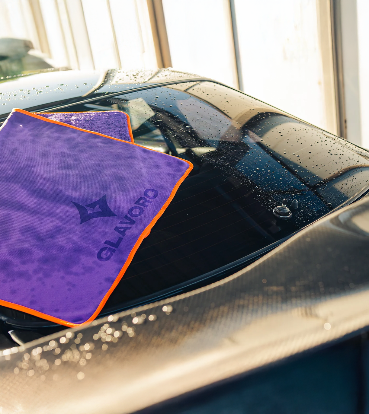 Mikrofibra GLAVORO jest wykonana specjalną metodą tkania, dzięki czemu wchłania wodę z powierzchni lakieru, zamiast ją rozmazywać.